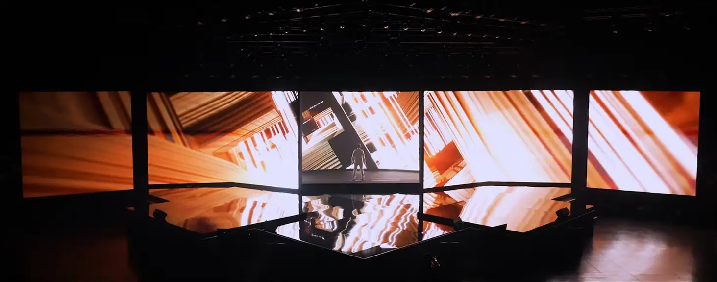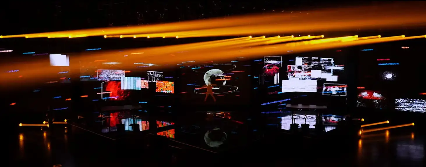 A 4-minute-30-second opening show, blending choreography, holograms, and panoramic media, took the audience on a journey from the birth of particles to our spacecraft, navigating through data, images, and the complexity of the world around us.